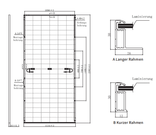 Zweiseitige, doppelt verglaste Module, symmetrische Bauweise, geringes Risiko von versteckten Rissen.