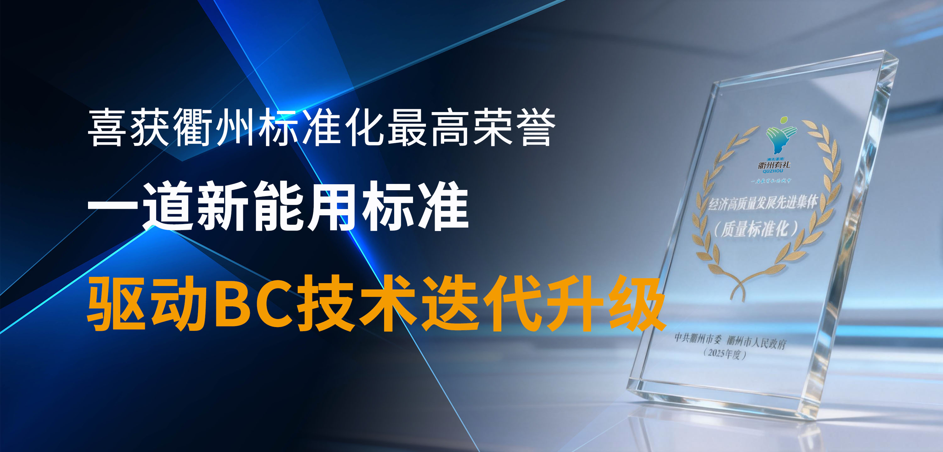 标准引领│喜获衢州标准化最高荣誉!一道新能用标准驱动 BC 技术迭代升级