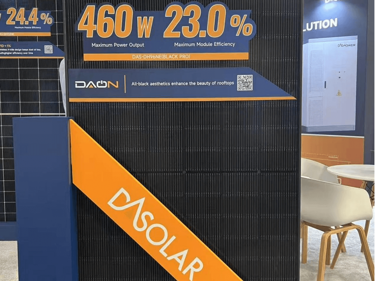 本届展会上,一道新能集中展示了DAON系列多款核心产品,涵盖高效N型组件、DBC组件、自清洁组件、轻质组件及差异化创新产品,精准匹配英国市场对高发电效率、高安全性和场景适配性的需求。作为N型TOPCon技术的引领者,一道新能始终以降低度电成本、提升综合发电效率为目标,推动光伏技术迭代升级,实现了从TOPCon 1.0到5.0的五代技术飞跃,截至2025年6月,公司TOPCon 5.0电池量产效率突破27%,综合发电效率持续突破,开路电压达746mV,有力推动了全球光伏技术向更高效、更可持续的方向迈进。