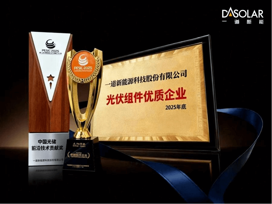 大会颁奖典礼环节上,一道新能斩获“中国光储前沿技术贡献奖”、“2025年度卓越组件企业奖”、“2025年度光伏组件优质企业”三项荣誉,是技术实力与市场口碑的双重认可。凭借领先的光伏技术、优质的产品质量与全场景适配能力,一道新能已成功进入多家大型国央企采购名录,成为一线光伏品牌中的中坚力量。未来,一道新能将持续加大研发投入,深化产学研协同,与产业链伙伴共建技术共享生态,推动光储产业向更高效率、更低成本、更优价值的方向迈进,在全球碳中和进程中书写更精彩的篇章。
