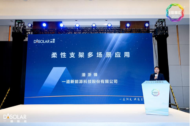 2025年11月23日至24日,在“2025能源思享汇”上,一道新能应用技术部产品总监潘浙锋发表题为《一道新能柔性支架全场景应用》的主题演讲,系统阐述了一道新能柔性光伏支架在复杂地形、极端气候及多元场景中的技术突破与经济价值,引发行业广泛关注。