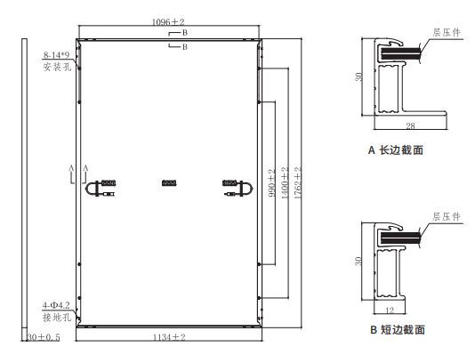 | 组件边框 | 阳极氧化膜铝合金(黑色) |
